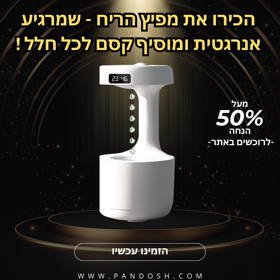 תהנו ממפיץ ריח - שמפיץ ומטהר אנרגיה הכולל תצוגת מים מרחפת